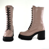 Ghete Dama Din Piele Naturala Klly 4Bocanc dama piele naturala cafe,ideali pentru lookurile carora vrei sa le dai un twist rock si elegant in acelasi timp. - Bocanc cu siret si fermoar, inaltime gheata de la talpa in sus 17 cm - Talpa neagra - Interior brant cu burete special,...