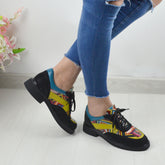 Pantofi Casual Dama din Piele Naturala,KyaPantofi casual, confectionati din piele naturala intoarsa neagra+piele box albastra si galbena+piele cu striatii multicolora- Interior -mesina naturala -Talpa ,cu toc ,inaltime talpa- 2,5 cm. Ofera un plus de inaltime ,fiind in acelasi timp usoara si confortabila -Sistem inchidere - cu siret. Despre încălțămintea...