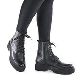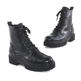 Ghete Dama Din Piele Naturala Negru 681Ghete de dama piele naturala cu siret si fermoar functional la Confectionate manual din piele naturala exterior Interior captusit cu blanita neagra Piele naturala: box negru bzonat Talpa groasa neagra. Inaltime talpa in fata 3 cm, in spate 4 cm Brantul bocancilor este prevazut...