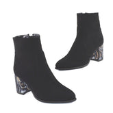 Ghete Dama Din Piele Naturala BombyBotine elegante de dama cu toc vopsit Confectionate manual din piele naturala exterior Piele box negru La interior sunt captusite cu blanita Inaltime toc 5 cm Toc imbracat piele cu insertie arginti Brantul botinelor este prevazut cu un buret special care ofera un plus...