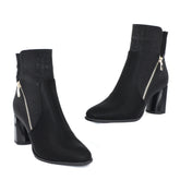Ghete Dama din Piele Naturala,DeliaMaterial exterior: Piele naturala nabuk cu inserti argintii (intoarsa ) .Material interior: captusite textil(blanita) Talpa : cu toc ,ce masoaara 3,5 cm Varf rotund, sistem inchidere : fermoar + siret. Inaltime : 16 cm Despre încălțămintea...