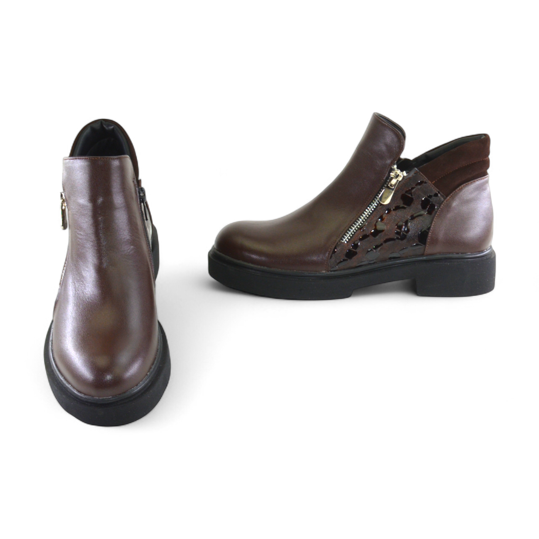 Ghete piele naturala maro + piele cu model , - Ghete: Material interior: captusite textil (blanita), - Talpa neagra, varf rotunt, -Sistem inchidere - fermoar ,Ghete produsi in Romania Producator: Nike Invest