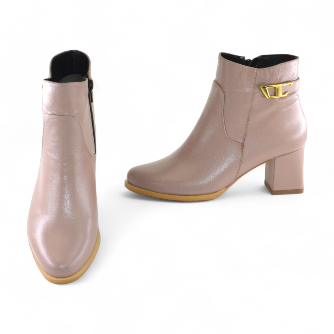 Botine elegante de dama cu toc vopsit. Confectionate manual din piele naturala exterior Piele naturala roz. La interior sunt captusite cu blanita Brantul botinelor este prevazut cu un buret special care ofera un plus de comoditate Botine produse in Romania