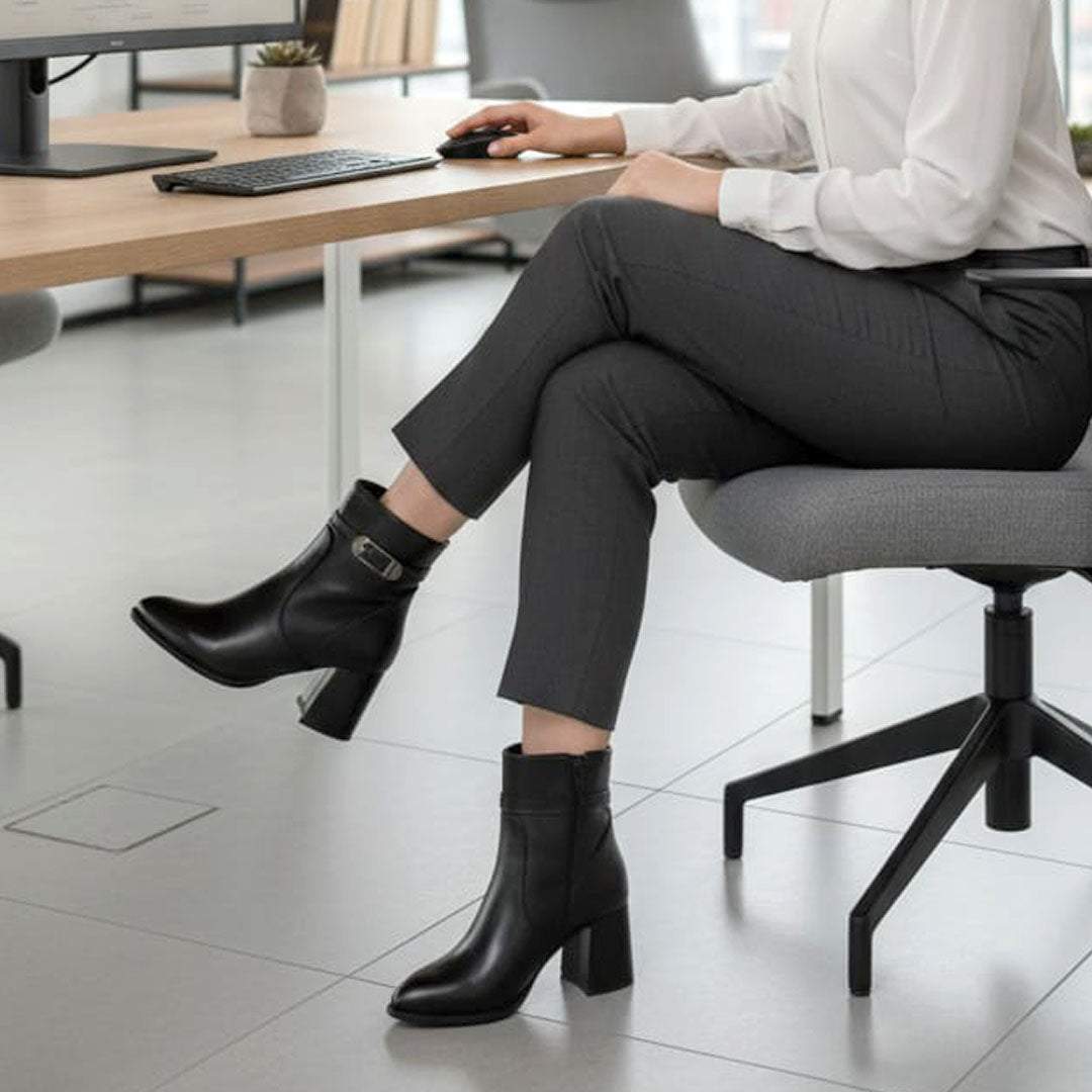 Ghete de dama piele negra cu curea si fermoar functional la inetrior Confectionate manual din piele naturala exterior Interior captusit cu blanita neagra Talpa groasa neagra. Brantul bocancilor este prevazut cu un buret special care ofera un plus de confort