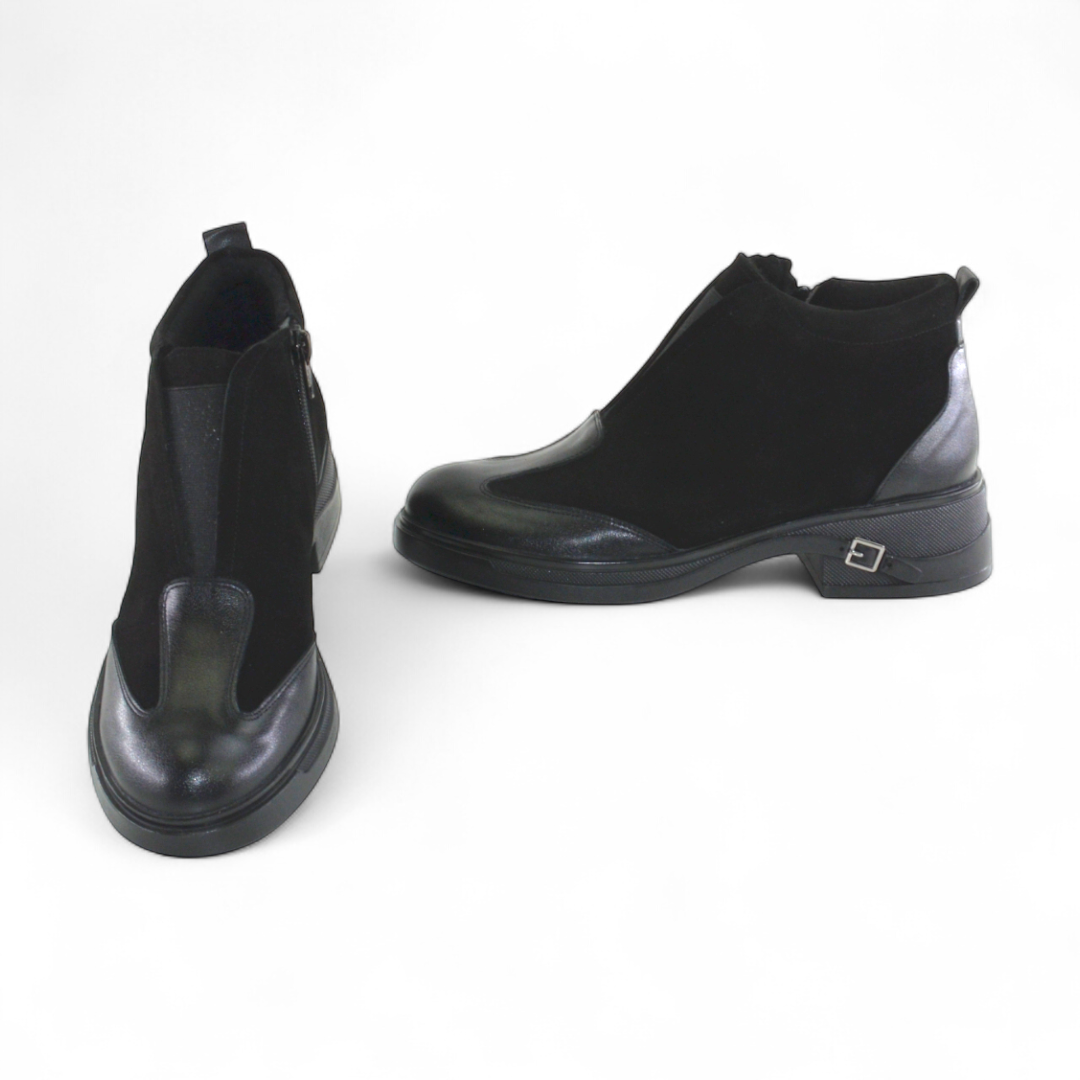 Ghete piele naturala neagra + neagra velur , - Ghete: Material interior: captusite textil (blanita), - Talpa neagra, varf rotunt, -Sistem inchidere - fermoar, Ghete produsi in Romania Producator: Nike Invest