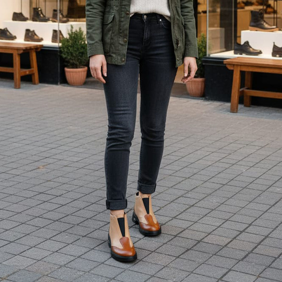 Ghete piele naturala orange + bej, - Ghete: Material interior: captusite textil (blanita), - Talpa neagra, varf rotunt, -Sistem inchidere - fermoar, Ghete produsi in Romania Producator: Nike Invest