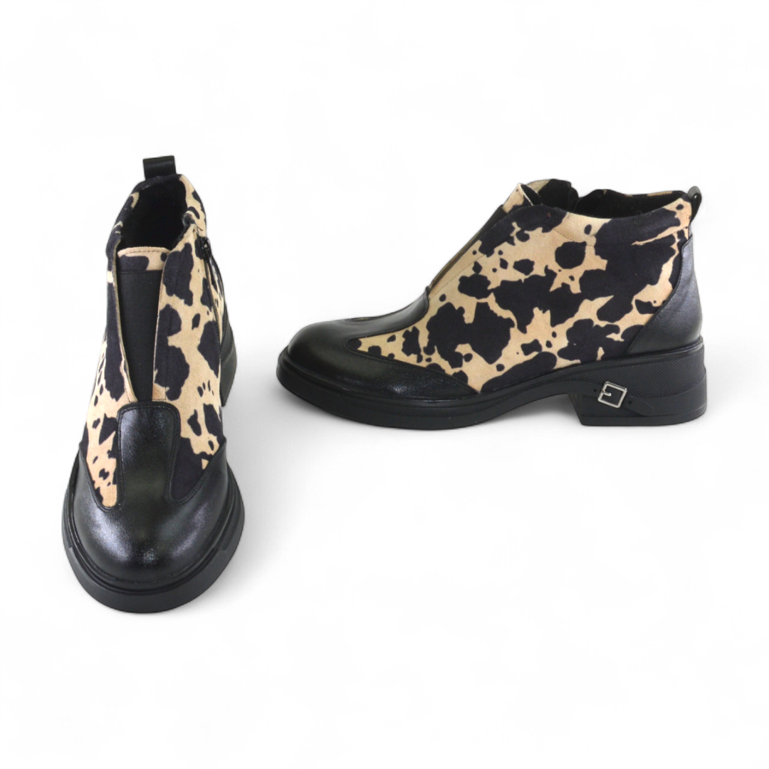 Ghete piele naturala neagra + piele cu model modern, - Ghete: Material interior: captusite textil (blanita), - Talpa neagra, varf rotunt, -Sistem inchidere - fermoar, Ghete produsi in Romania Producator: Nike Invest