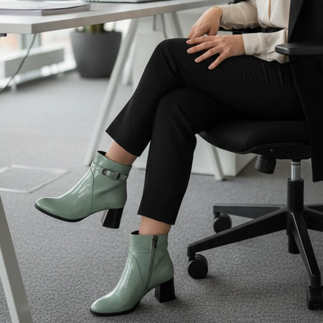 Botine elegante de dama cu toc vopsit. Confectionate manual din piele naturala exterior Piele naturala verde deschis. La interior sunt captusite cu blanita Brantul botinelor este prevazut cu un buret special care ofera un plus de comoditate Botine produse in Romania