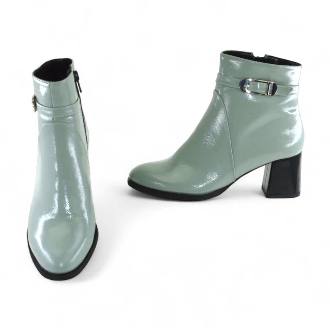 Botine elegante de dama cu toc vopsit. Confectionate manual din piele naturala exterior Piele naturala verde deschis. La interior sunt captusite cu blanita Brantul botinelor este prevazut cu un buret special care ofera un plus de comoditate Botine produse in Romania