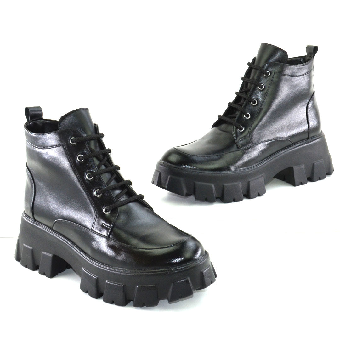 Ghete de dama piele natural. Confectionate manual din piele naturala exterior Interior captusit cu blanita neagra Piele naturala: neagra. Talpa groasa neagra. Inaltime talpa in fata 3 cm, in spate 4.5 cm Brantul bocancilor este prevazut cu un buret special care ofera un plus de confort