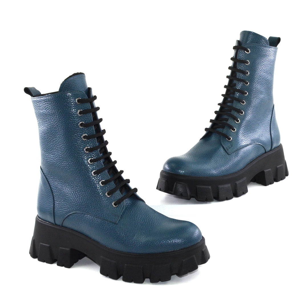 Ghete de dama piele naturala cu siret si fermoar functional la inetrior Confectionate manual din piele naturala exterior Interior captusit cu blanita neagra Piele naturala: bizon blo Talpa groasa neagra. Inaltime talpa in fata 3,5 cm, in spate 4.5 cm Brantul bocancilor este prevazut cu un buret special care ofera un plus de confort