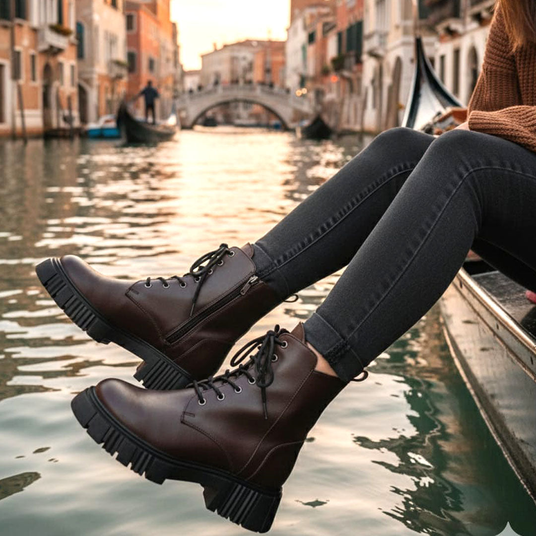 Ghete de dama piele maro ,ghete cu siret si fermoar functional la inetrior Confectionate manual din piele naturala exterior Interior captusit cu blanita neagra Talpa groasa neagra. Brantul bocancilor este prevazut cu un buret special care ofera un plus de confort