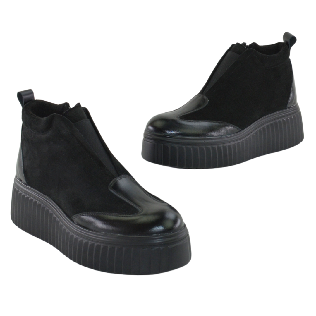 Ghete piele naturala neagra, - Ghete: Material interior: captusite textil (blanita), - Talpa neagra, varf rotunt, - Inaltime talpa: 3,5 cm in spate si 2,5 cm in fata, talpa usoara -Sistem inchidere - fermoar ,Ghete produsi in Romania Producator: Nike Invest