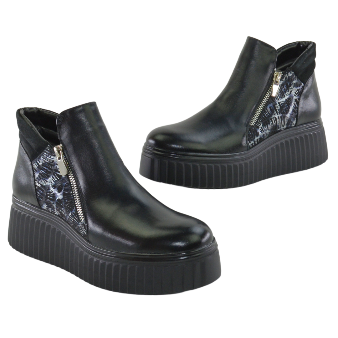 Ghete piele naturala neagra + model, - Ghete: Material interior: captusite textil (blanita), - Talpa neagra, varf rotunt, - Inaltime talpa: 3,5 cm in spate si 2,5 cm in fata, talpa usoara -Sistem inchidere - fermoar ,Ghete produsi in Romania Producator: Nike Invest