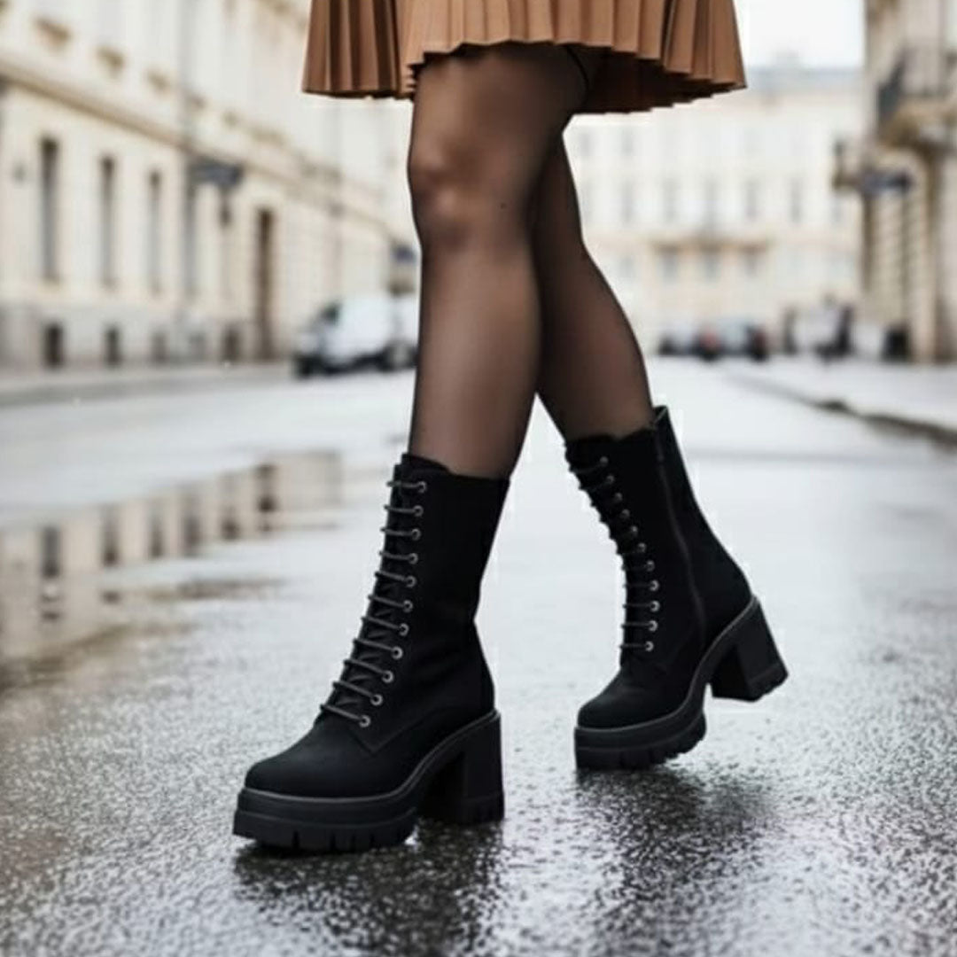 - Bocanc cu siret si fermoar, inaltime gheata de la talpa in sus 17 cm