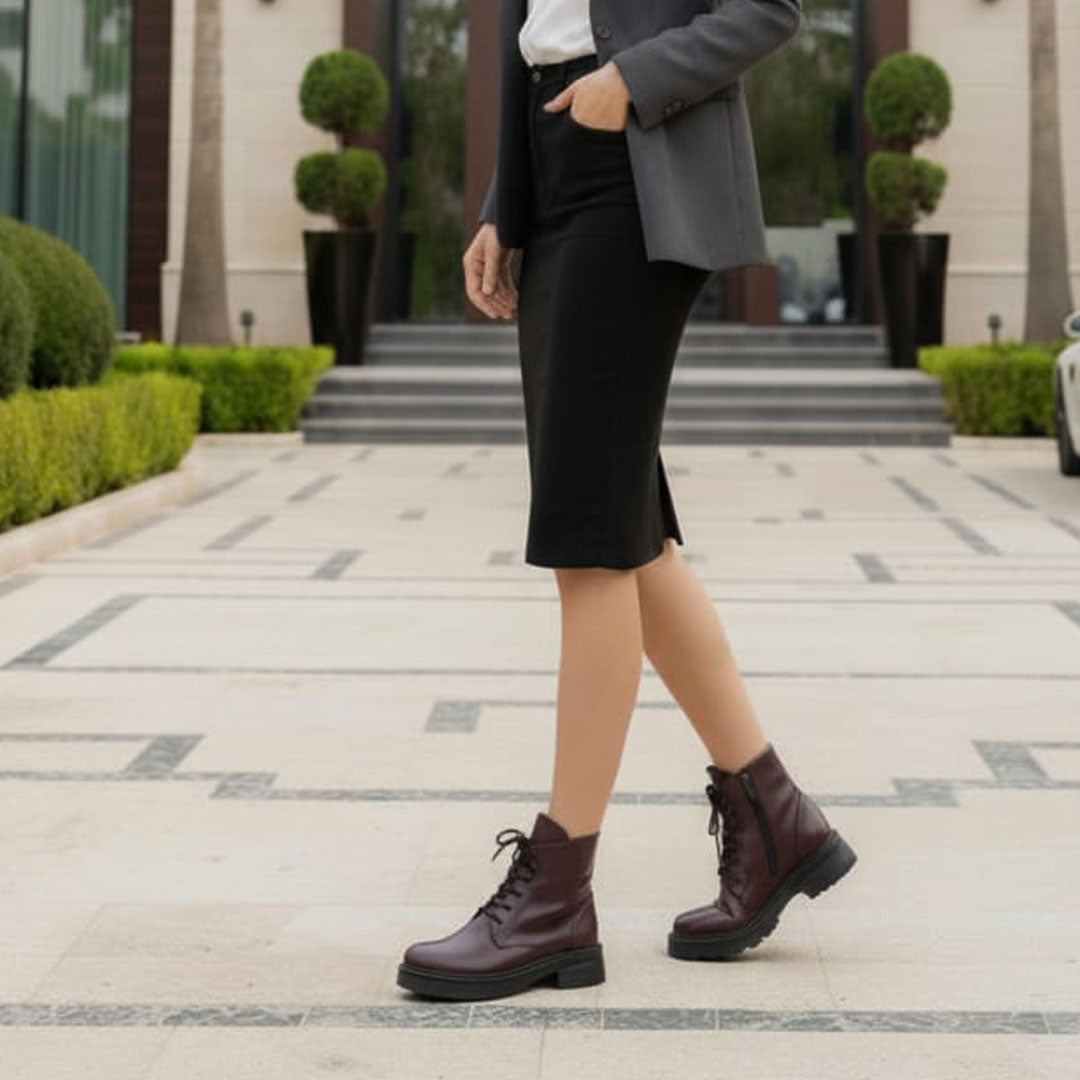 Ghete de dama piele naturala cu siret si fermoar functional la inetrior Confectionate manual din piele naturala grena exterior Interior captusit cu blanita neagra Piele naturala: Talpa groasa neagra. Brantul bocancilor este prevazut cu un buret special care ofera un plus de comoditate