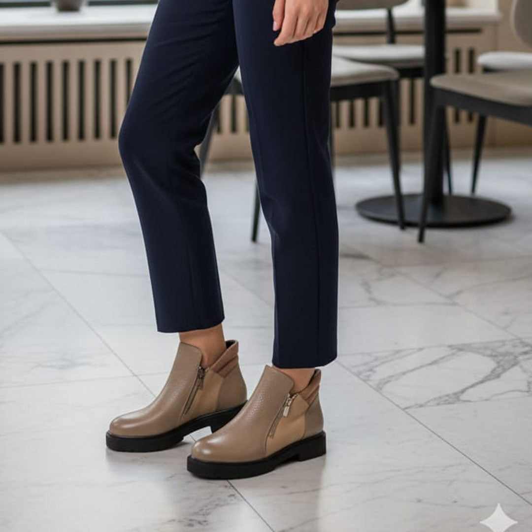 Ghete piele naturala bej + bej velur , - Ghete: Material interior: captusite textil (blanita), - Talpa neagra, varf rotunt, -Sistem inchidere - fermoar ,Ghete produsi in Romania Producator: Nike Invest