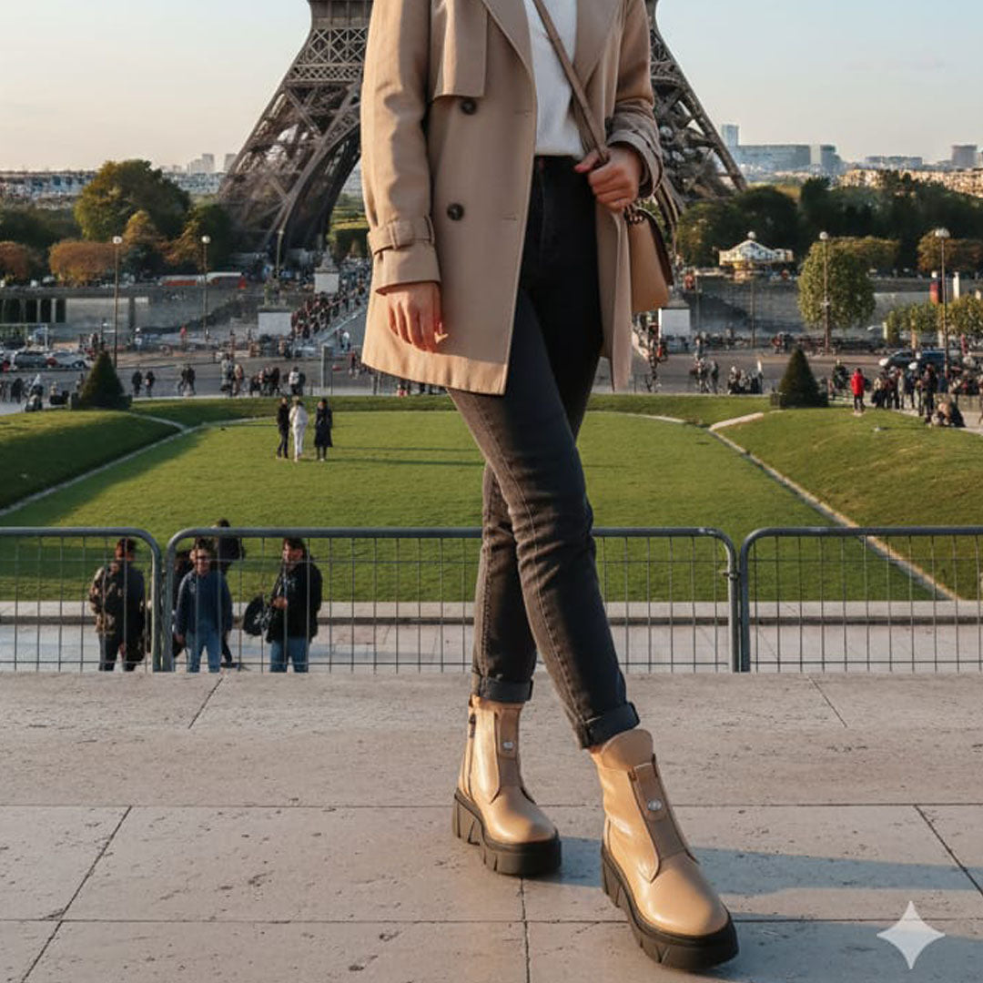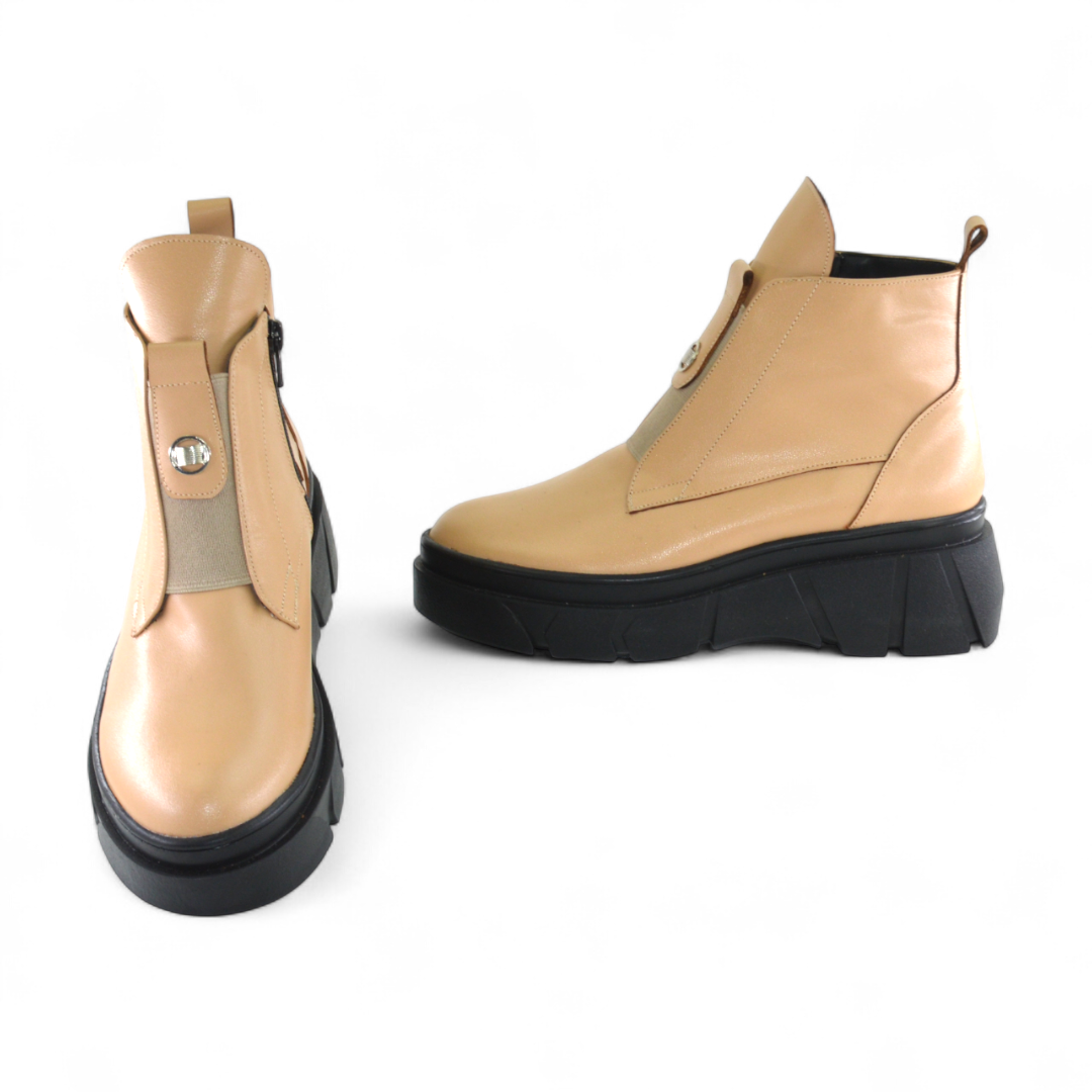 Ghete de dama piele naturala cu siret si fermoar functional la inetrior Confectionate manual din piele naturala bej cu ornament. exterior Interior captusit cu blanita neagra Piele naturala: Talpa groasa neagra. Brantul bocancilor este prevazut cu un buret special care ofera un plus de comoditate