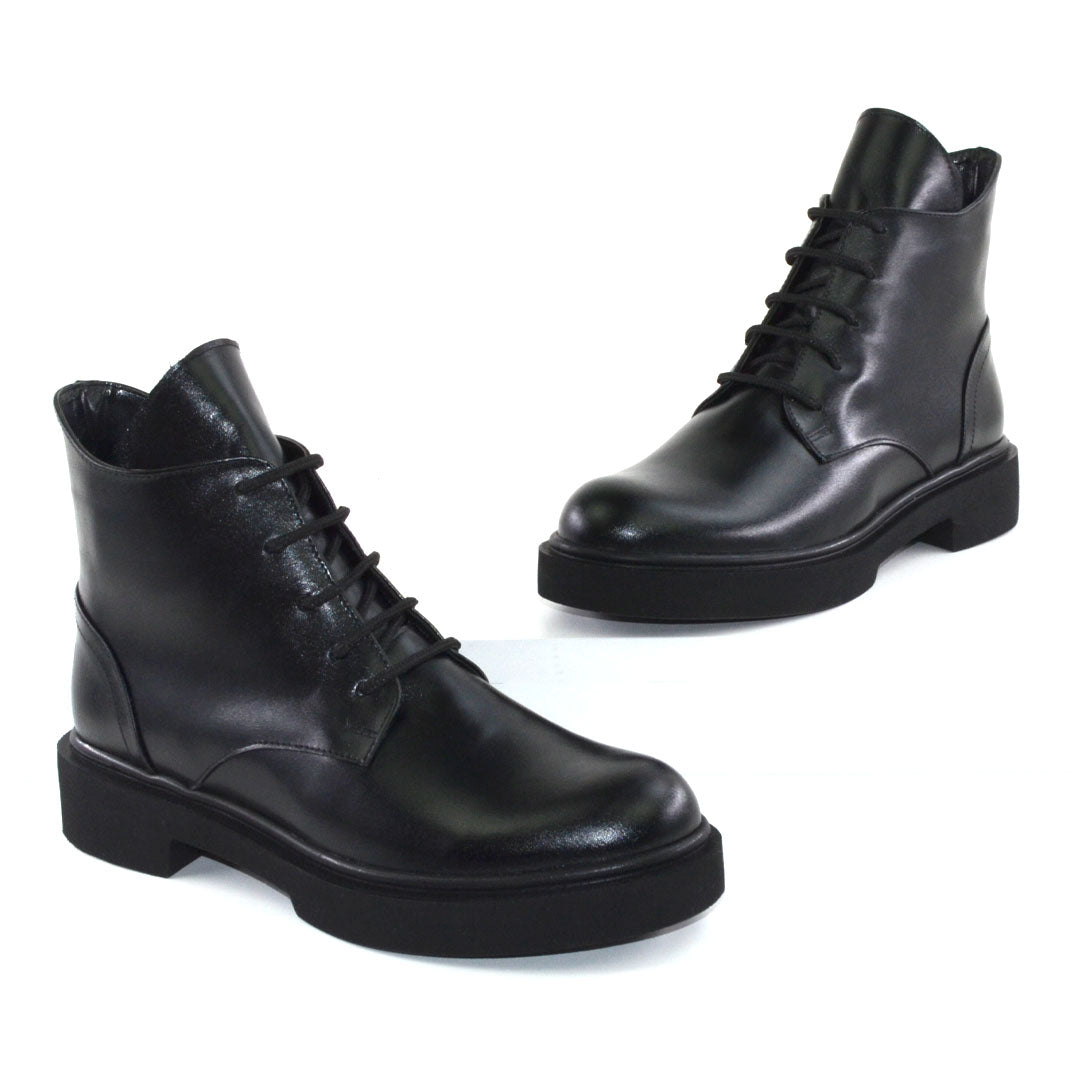 Ghete piele naturala negru box , - Ghete: Material interior: captusite textil (blanita), - Talpa neagra, varf rotunt, - Inaltime talpa: 2,5 cm in spate si 3,5 cm in fata, talpa usoara -Sistem inchidere - siret ,Ghete produsi in Romania Producator: Nike Invest