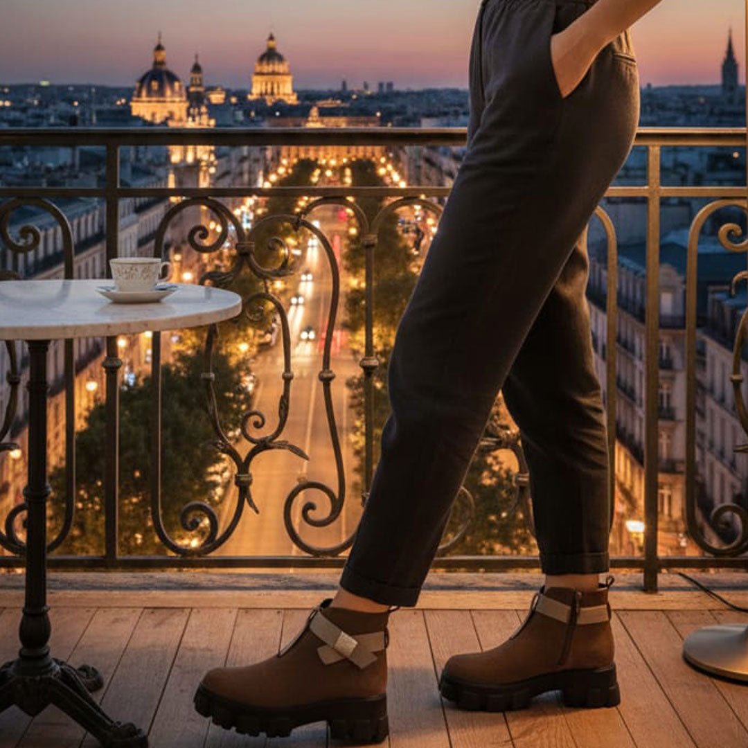 Ghete de dama piele maro velur cu fermoar si curea functional la inetrior Confectionate manual din piele naturala exterior Interior captusit cu blanita neagra Talpa groasa neagra. Brantul bocancilor este prevazut cu un buret special care ofera un plus de confort