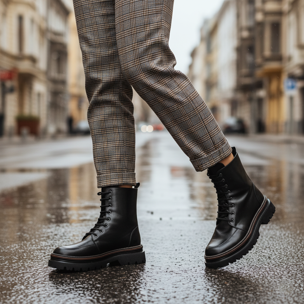 Ghete de dama piele naturala cu siret si fermoar functional la inetrior Confectionate manual din piele naturala negru exterior Interior captusit cu blanita neagra Piele naturala: Talpa groasa neagra. Inaltime talpa in fata 3 cm, in spate 4 cm Brantul bocancilor este prevazut cu un buret special care ofera un plus de comoditate