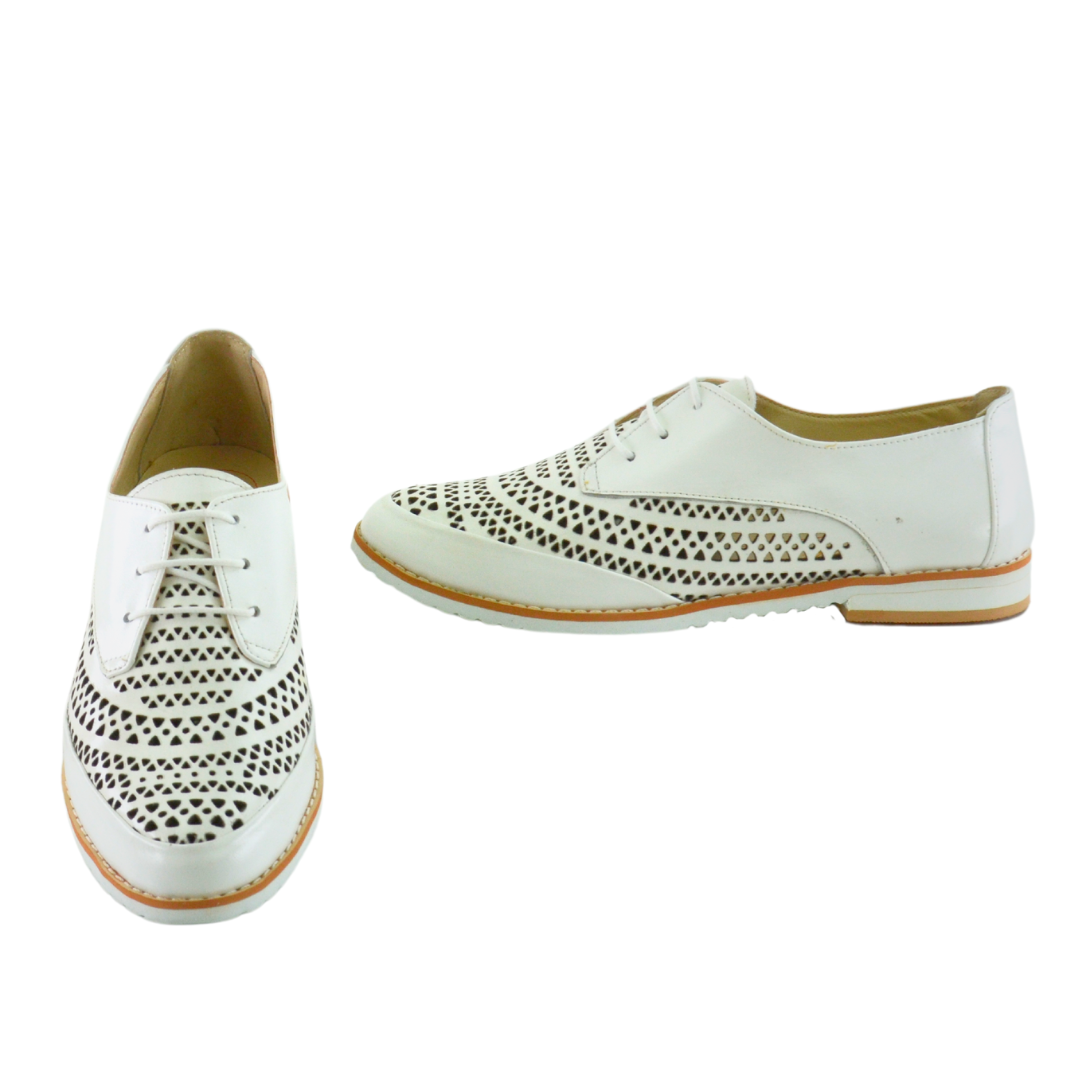 Pantofi casual confectionati din piele naturala alb perforat- Interior din piele naturala -Talpa buretoasa cu toc. Ofera un plus de inaltime ,fiind in acelasi timp usoara si confortabila.