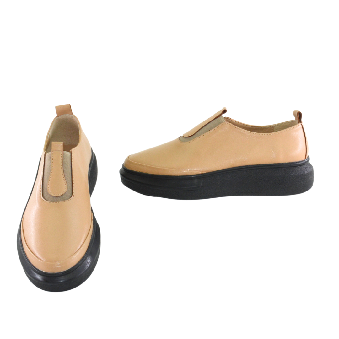Pantofi casual de culoare bej. Pantofi cu siret si cu talpa platforms. Confectionati manual din piele naturala exterior si interior. Piele naturala de culoare bej. Talpa negre extra usoara, foarte confortabila si rezistenta. Brantul pantofilor este prevazut cu un buret special care ofera un plus de comoditate. Pantofi produsi in Romania.