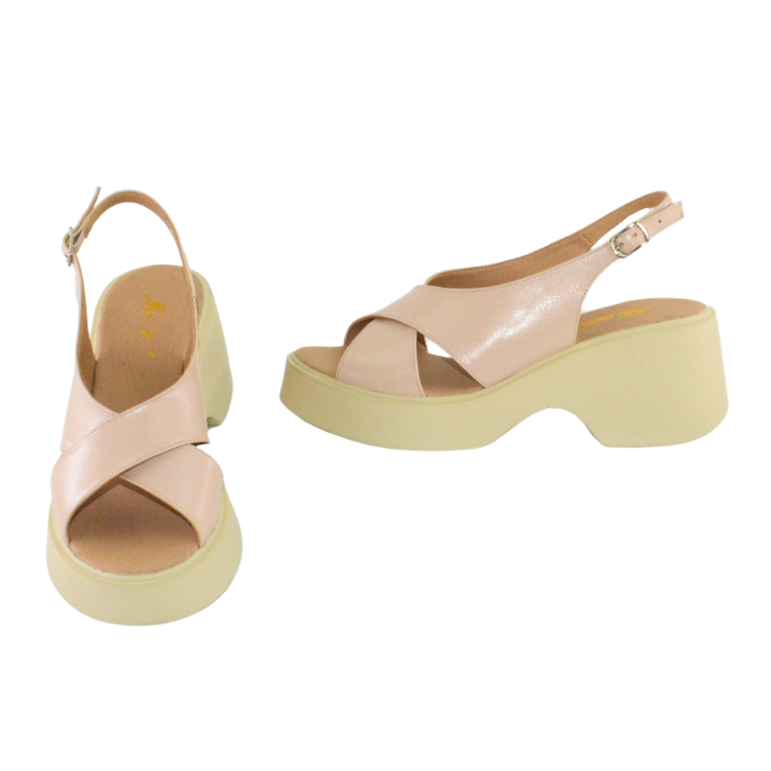 Descriere Sandale de dama talpa groasa pentru vara Exterior Piele naturala de culloare bej cu varf rotunt Interior piele naturala Talpa bej. Inaltime talpi 7 cm spate si 2, cm fata Brantul sandalelor este prevazut cu un buret special care ofera un plus de comoditate