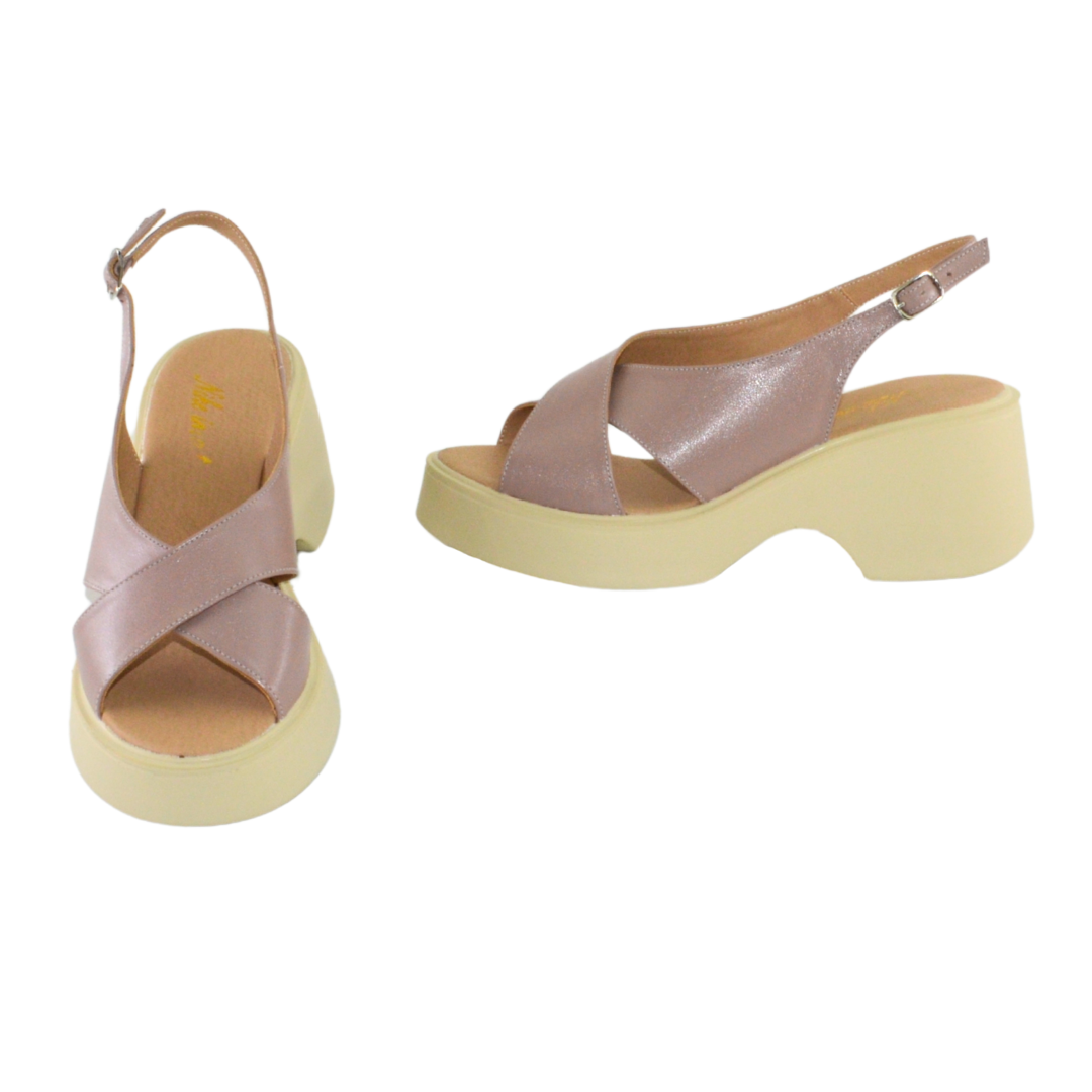 Descriere Sandale de dama talpa groasa pentru vara Exterior Piele naturala de culloare cafe cu varf rotunt Interior piele naturala Talpa bej. Inaltime talpi 7 cm spate si 2, cm fata Brantul sandalelor este prevazut cu un buret special care ofera un plus de comoditate
