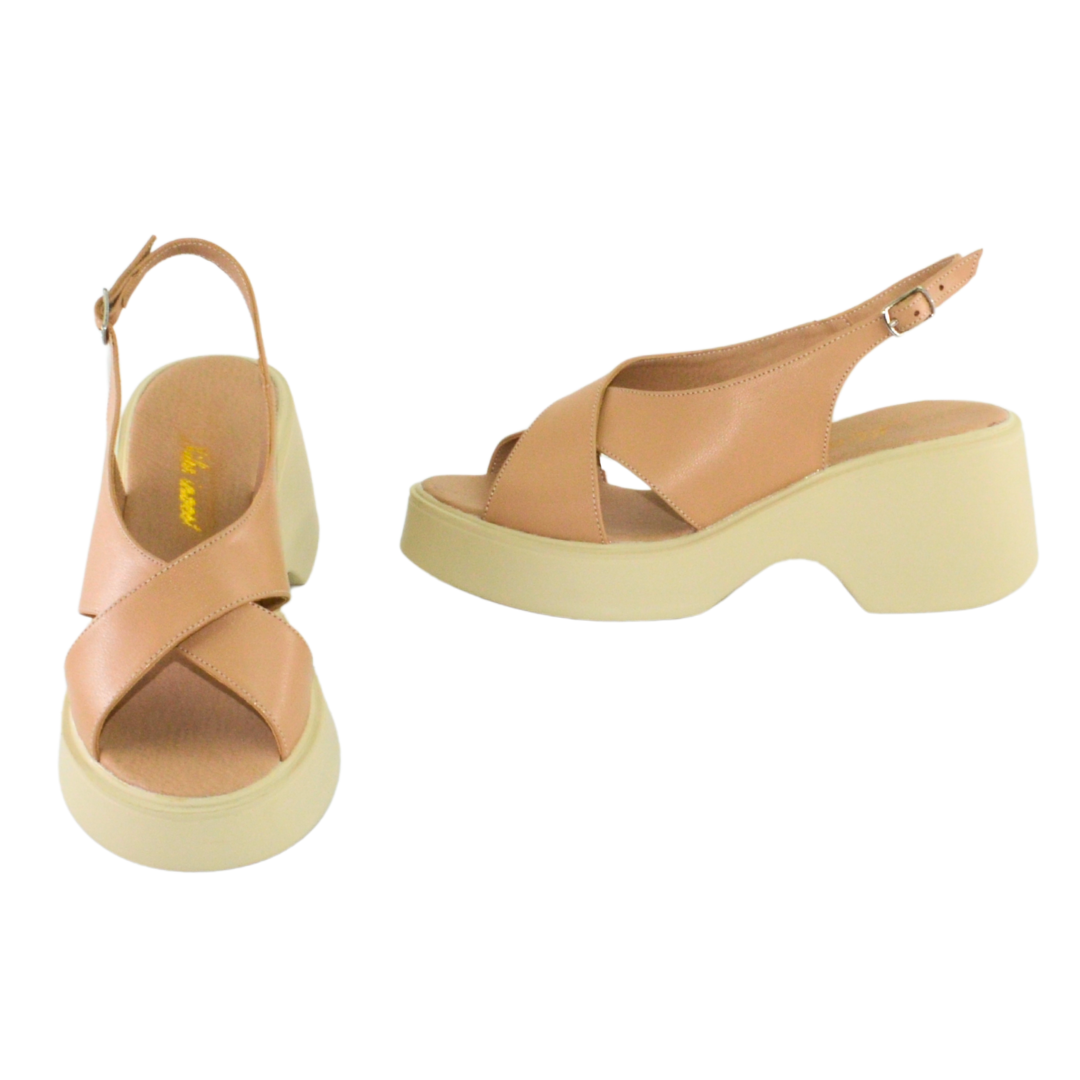 Descriere Sandale de dama talpa groasa pentru vara Exterior Piele naturala de culoare cappucino cu varf rotunt Interior piele naturala Talpa bej. Inaltime talpi 7 cm spate si 2, cm fata Brantul sandalelor este prevazut cu un buret special care ofera un plus de comoditate