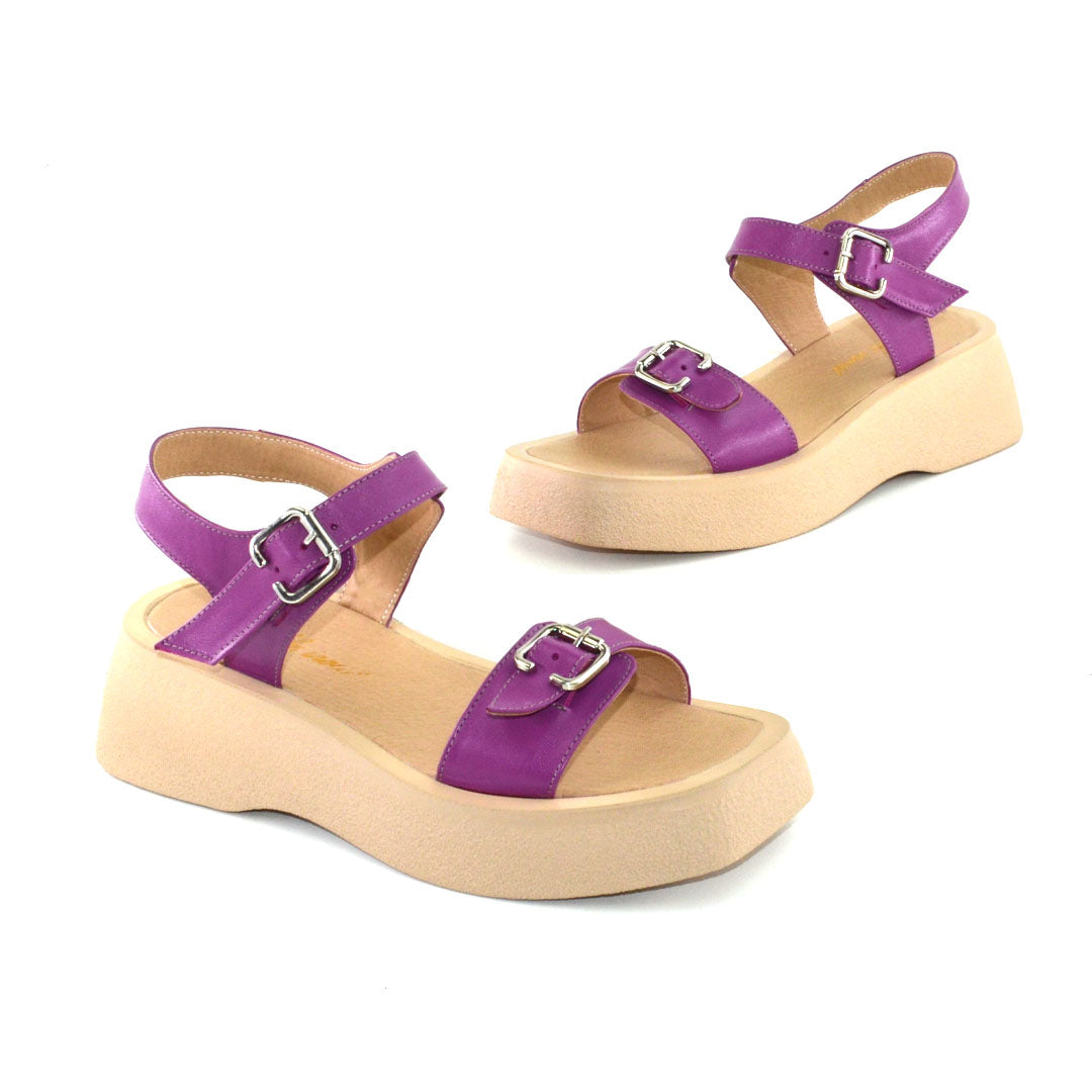 Sanda de dama talpa groasa pentru vara,Exterior Piele naturala de culloare mov varf patrat cu inserti se talpa Interior piele naturala Talpa ortopedica bej. Inaltime talpi 5 cm spate si 2, cm fata Brantul sandalelor este prevazut cu un buret special care ofera un plus de comoditate
