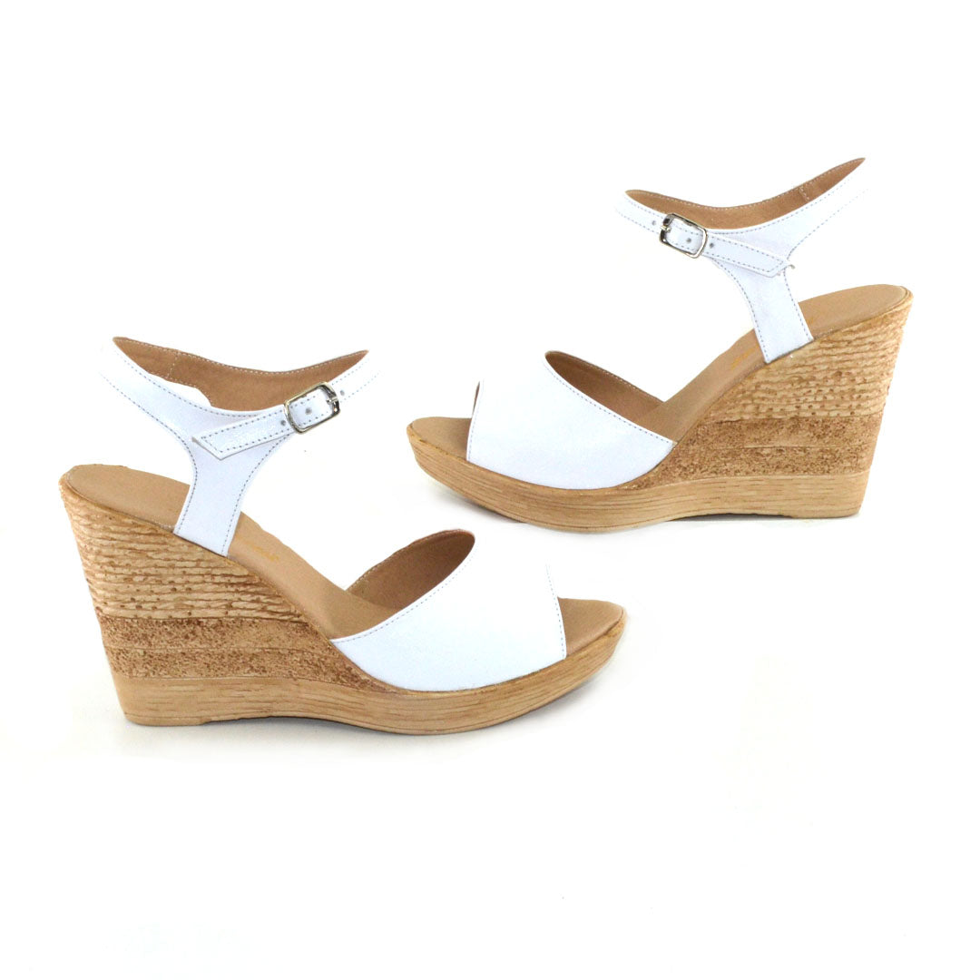 Sandale de dama talpa ortopedica Exterior Piele naturala de culloare alba varf rotund Interior piele naturala Talpa bej cu inseri de pluta . Inaltime talpi 9 cm spate si 2,5, cm fata Brantul sandalelor este prevazut cu un buret special care ofera un plus de comoditate