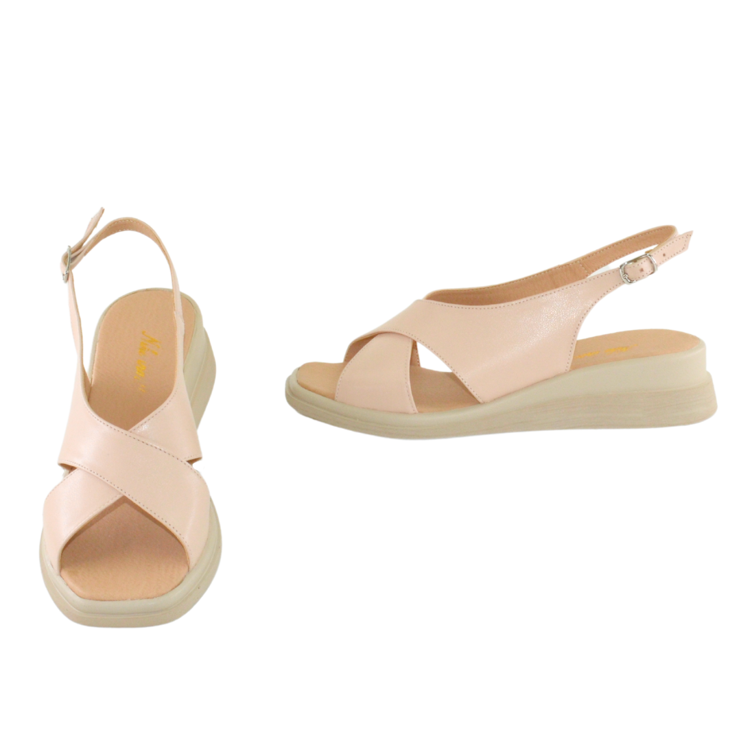 Sandale din piele naturala box - Interior din piele naturala. Sistemul de inchidere este prin catarama metalica rezistenta, care isi pastreaza culoarea si nu oxideaza. Talpa ortopedica de inaltime medie ofera stabilitate si confort pe toata perioada purtarii. Inaltimea tocului masoara 4,5 cm.
