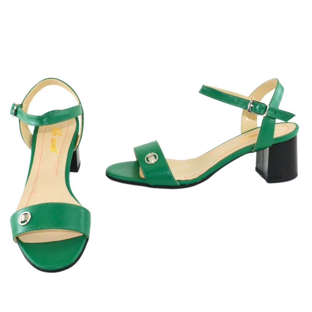 Sandale elegante de dama cu un toc foarte comod. Confectionate manual din piele naturala exterior si interior Piele naturala verde: Inaltime toc de 6 cm Toc vopsit. Brantul sandalelor este prevazut cu un buret special care ofera un plus de comoditate Sandale produse in Romania