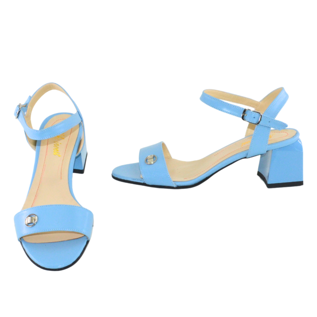 Sandale elegante de dama cu un toc foarte comod. Confectionate manual din piele naturala exterior si interior Piele naturala albastre: Inaltime toc de 6 cm Toc vopsit. Brantul sandalelor este prevazut cu un buret special care ofera un plus de comoditate Sandale produse in Romania