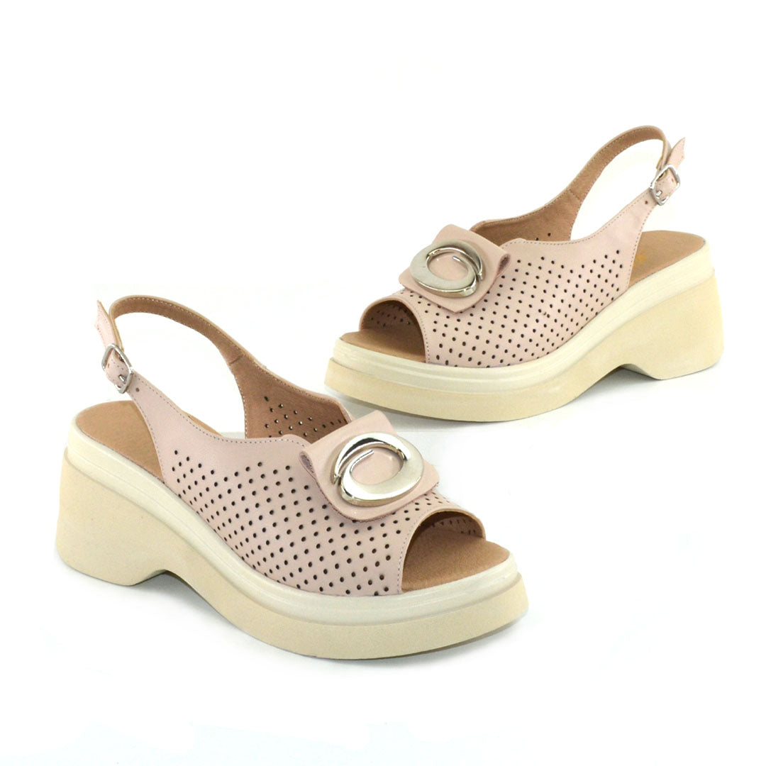 Sandale de dama talpa groasa perfecte pentru vara Exterior Piele naturala de culloare bej cu varf rotunt Interior piele naturala Talpa bej. Inaltime talpi 7 cm spate si 2, cm fata Brantul sandalelor este prevazut cu un buret special care ofera un plus de comoditate