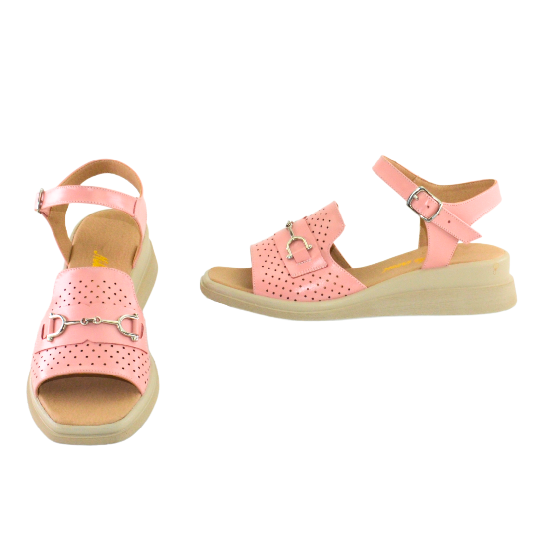 Sandala de dama pentru vara,Exterior Piele naturala cu model. Varf patrat cu talpa bej Interior piele natural. Brantul sandalelor este prevazut cu un buret special care ofera un plus de comoditate. alpa ortopedica de inaltime medie ofera stabilitate si confort pe toata perioada purtarii. Inaltimea tocului masoara 4,5 cm.