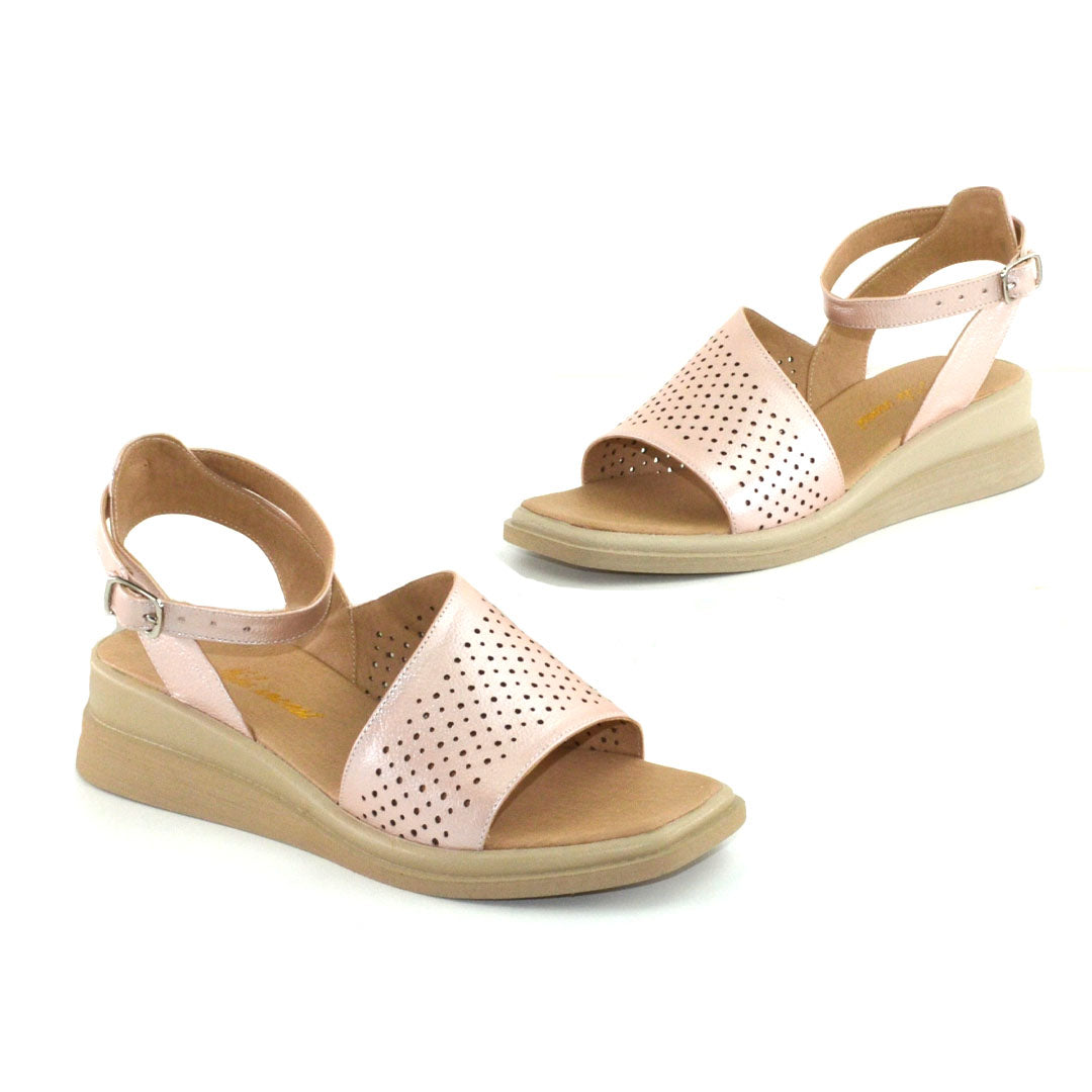 Sandale din piele naturala box roz pudra - Interior din piele naturala. Sistemul de inchidere este prin catarama metalica rezistenta, care isi pastreaza culoarea si nu oxideaza. Talpa ortopedica de inaltime medie ofera stabilitate si confort pe toata perioada purtarii. Inaltimea tocului masoara 4,5 cm.